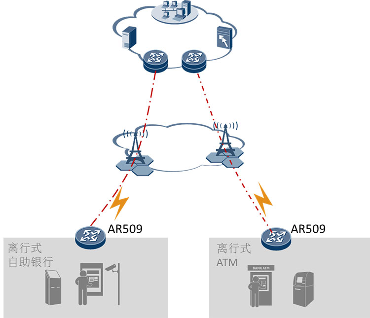 AR509敏捷網關可(kě)以部署在離行式自助銀行和(hé)離行式ATM機,通(tōng)過4G/3G提供無線回傳,或者爲有線鏈路提供4G備份,提高(gāo)網絡的(de)可(kě)靠性。