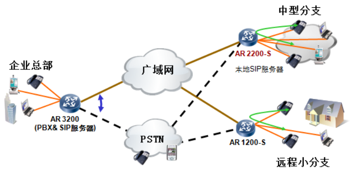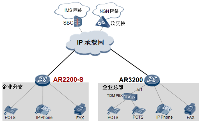 AR2200-S系列企業路由器作爲企業語音(yīn)業務網關,可(kě)作爲IP PBX和(hé)SIP接入網關。
