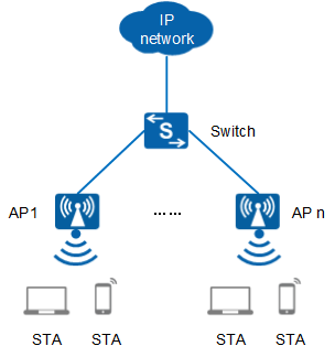 在上述組網中,設備作爲FAT AP獨立完成用(yòng)戶接入、認證、數據安全、業務轉發和(hé)QoS等功能。