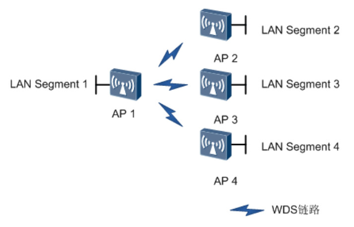Fit AP WDS典型組網圖(網橋模式-點對(duì)多(duō)點):