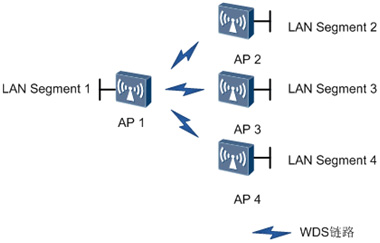 Fit AP WDS典型組網圖(網橋模式-點對(duì)多(duō)點)