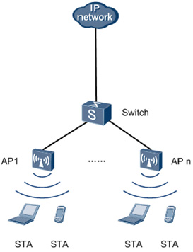 在上述組網中,設備作爲Fat AP獨立完成用(yòng)戶接入、認證、數據安全、業務轉發和(hé)QoS等功能。