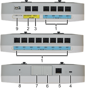 - 下(xià)行網口指示燈:指示各下(xià)行網口的(de)數據傳輸和(hé)PoE輸出狀态。